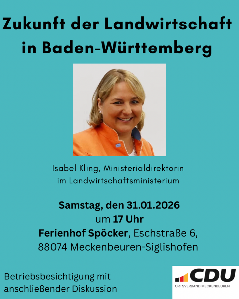 Die CDU Meckenbeuren freut sich, an diesem Abend sowohl Betroffene des Hochwassers und Landwirte, wie auch Gemeinde, Kreis und Land zusammengebracht zu haben. Die Bandbreite der Diskussionsthemen reichte vom technischen Hochwasserschutz über Gewässerpflege, Biber und Feldkapazitäten bis hin zu praktischen Fragen der Unterstützung für Privateigentümer.